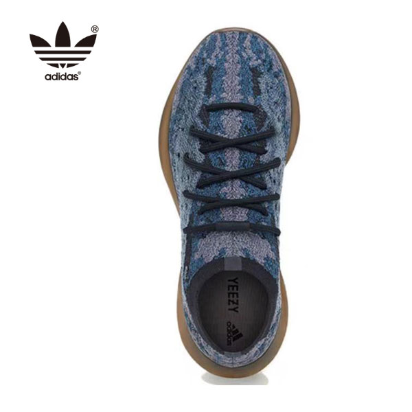 Yeezy 380 Covellite在重新設計的 Primeknit 鞋面中展現了海軍藍、靛藍和灰色的混合色調。迷彩風格的設計點綴著運動鞋半透明單絲窗口的穿孔細節,該窗口編織到側板上,以增強襪子般結構的透氣性。靈敏緩震通過籠式全長 Boost 中底實現,具有堆疊式抬高鞋跟,並由人字形橡膠外底支撐腳底。