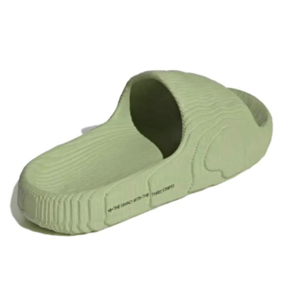 Adidas Yeezy Slide系列這款Yeezy Slide Green Adilette 22 Magic Lime 拖鞋是 adidas Originals Spring/Summer 2022 春夏系列產品的一部分,它採用帶凹槽的單一青綠色泡棉構造,其外觀讓人聯想到被侵蝕的沉積岩。鞋底外側上寫有「The Brand With The Three Stripes」,旨在向 adidas 標誌致敬。柔軟的鞋增加了舒適性和支撐力。